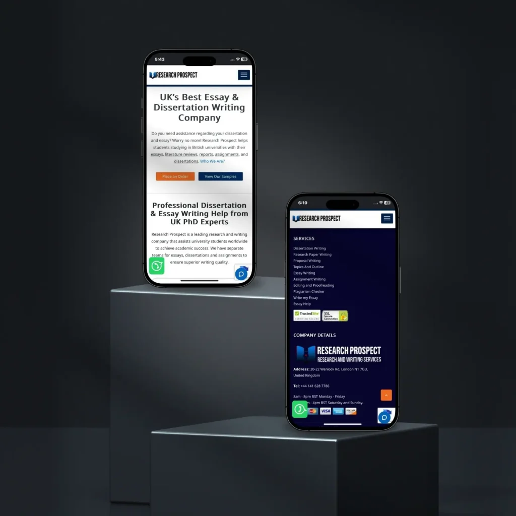 Research Prospect, a leading global provider of academic writing services offering dissertations, essays, and research proposals, faced declining online visibility due to frequent Google algorithm updates. To resolve this, the company partnered with Aims Wireless for a 12-month digital strategy focused on advanced SEO optimization and complete website redevelopment to enhance site performance, user experience, and achieve higher search engine rankings effectively.